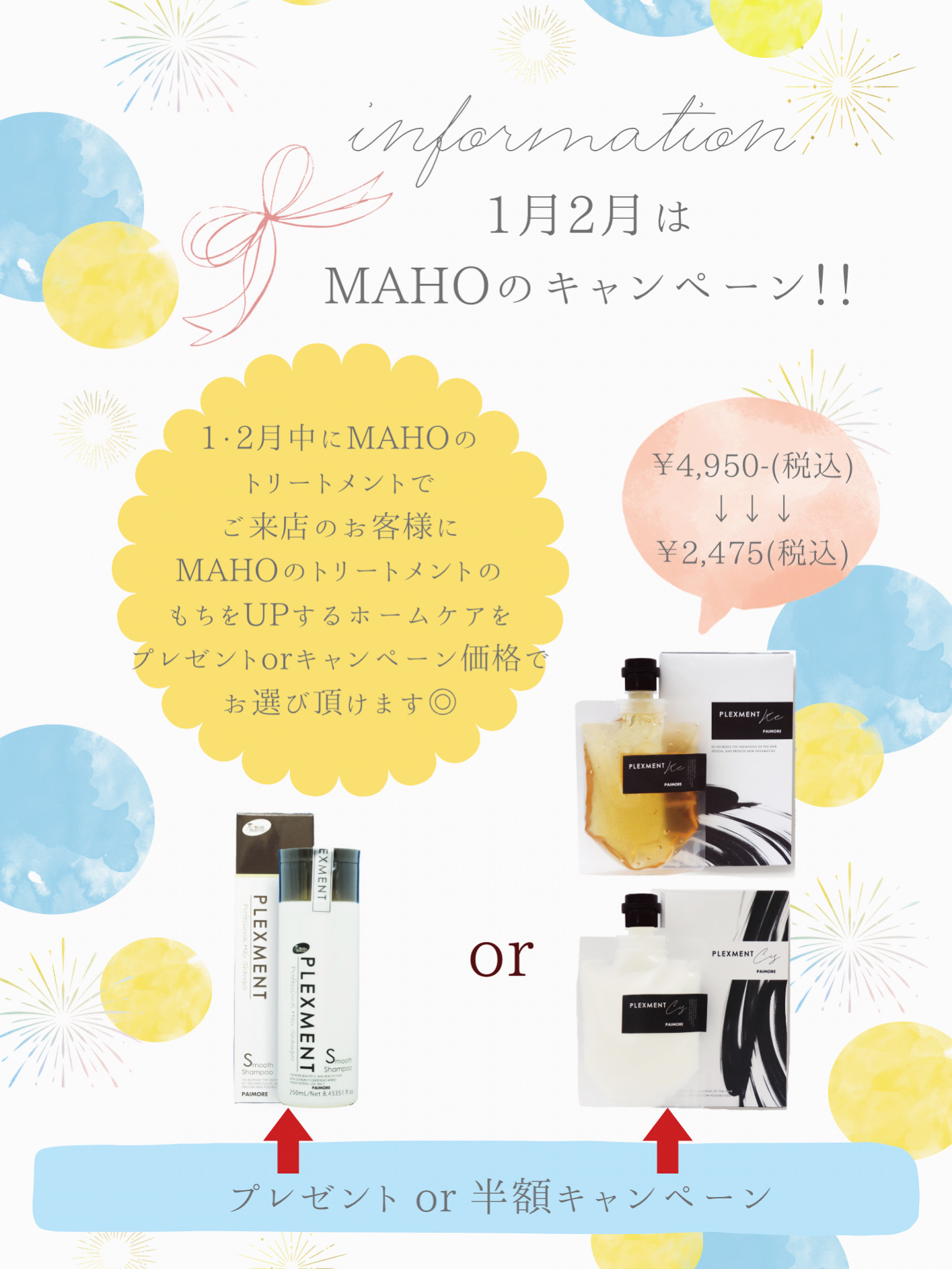 1月2月はMAHOのキャンペーン月です㊗️🎉